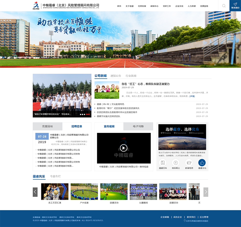 Project Description 中精蕴睿(北京)风险管理顾问有限公司2013年,现有教职工及各科目教育专家80多人,致力于为各中小培训学校(机构) 提供教育相关政策咨询与指引、法律服务、人才引进与培养、师资队伍建设与培训、教学教研与学科创新、市场营销企划、文化 理念塑造与品牌输出的专业化教育管理全方位的综合服务。 Official website address 沈阳http://in-re.com/ I want to share